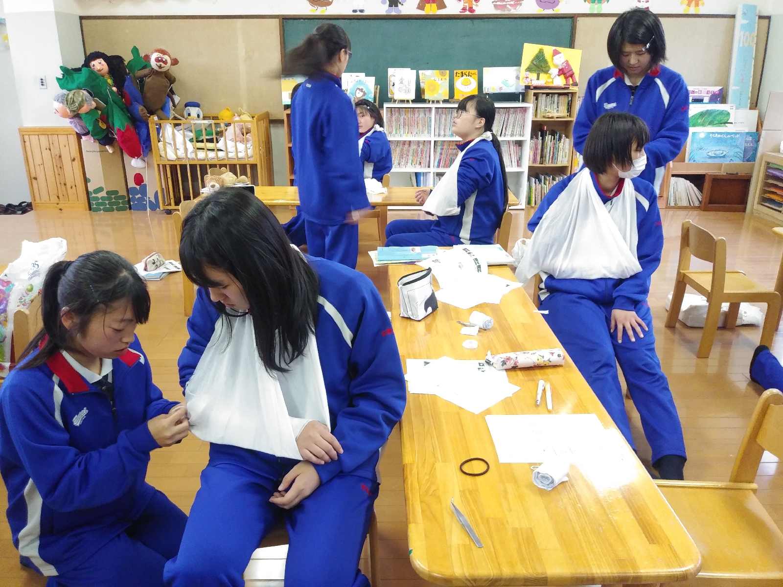 【こども福祉・3年】けがの手当て 日付: 12月 03, 2019 リンクを取得 Facebook × Pinterest メール 他のアプリ 今月末に行われる全国高等学校家庭科保育技術検定1級取得に向けて、「家庭看護技術(けがの手当て)」の講習を行いました。苦戦しましたが、包帯や三角巾を巻くことができました。